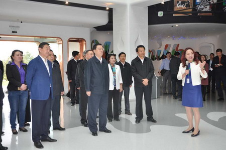 在参观中心实验室的过程中,孙伊萍通过电子触摸屏演示了蒙牛对全国原奶、原辅料、半成品和成品检验的实时监控体系,领导认真地听取了汇报,饶有兴趣地观看演示,并不时提问。张德江对奶源的质量安全尤为重视,当听到蒙牛引进丹麦阿拉的牧场管理技术,加强牧场奶源前端管理,提升生产过程控制和系统保障时,频频点头,给予肯定。